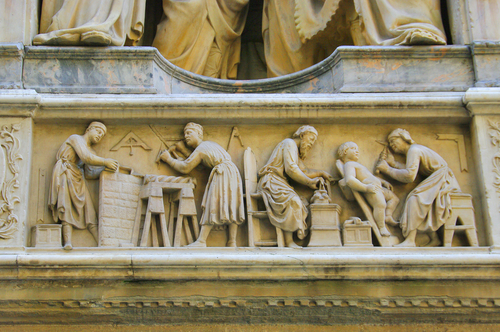 To protect them from weather damage, the original sculptures were moved indoors. What you see in the niches today are replicas, while the originals are preserved in the museum.